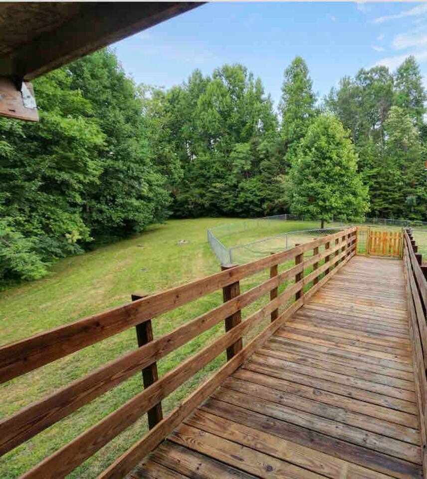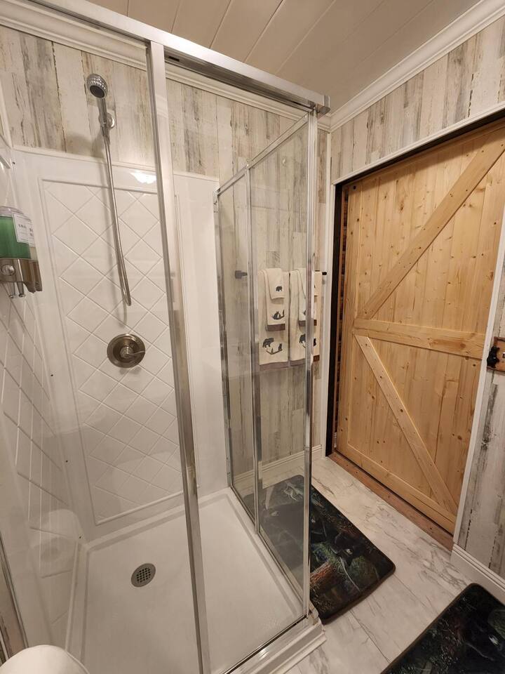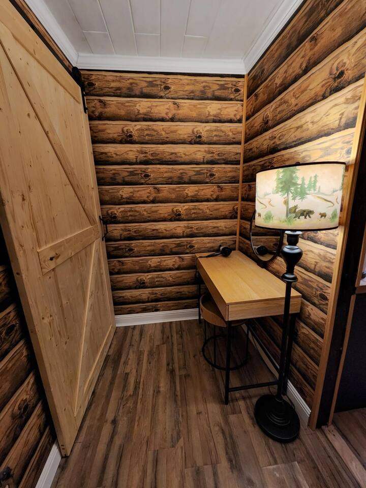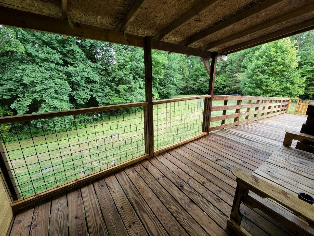 You will have a large patio with a two-seat bench in the back of the lodge. You will have the entire cabin to yourself. There is outdoor parking for one vehicle. Access to the outdoor recreation area, fenced yard, and game room are shared with the other rentals in the community.