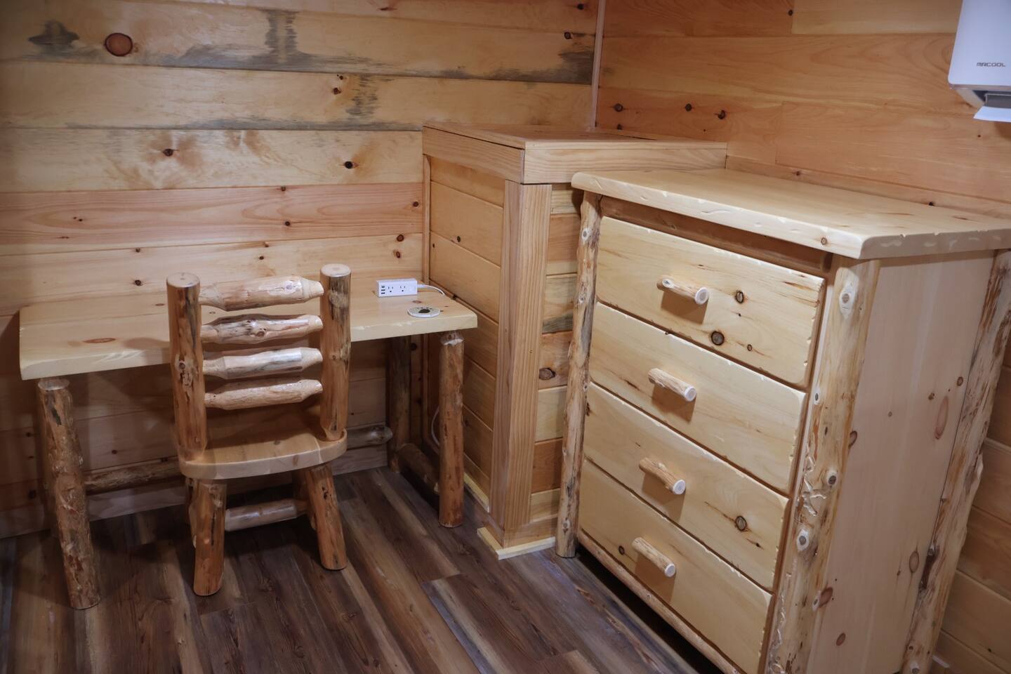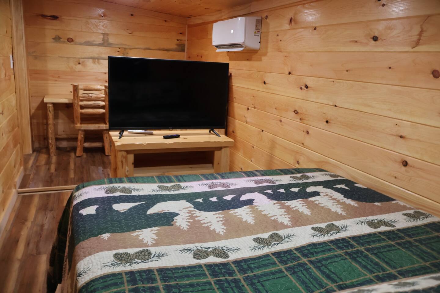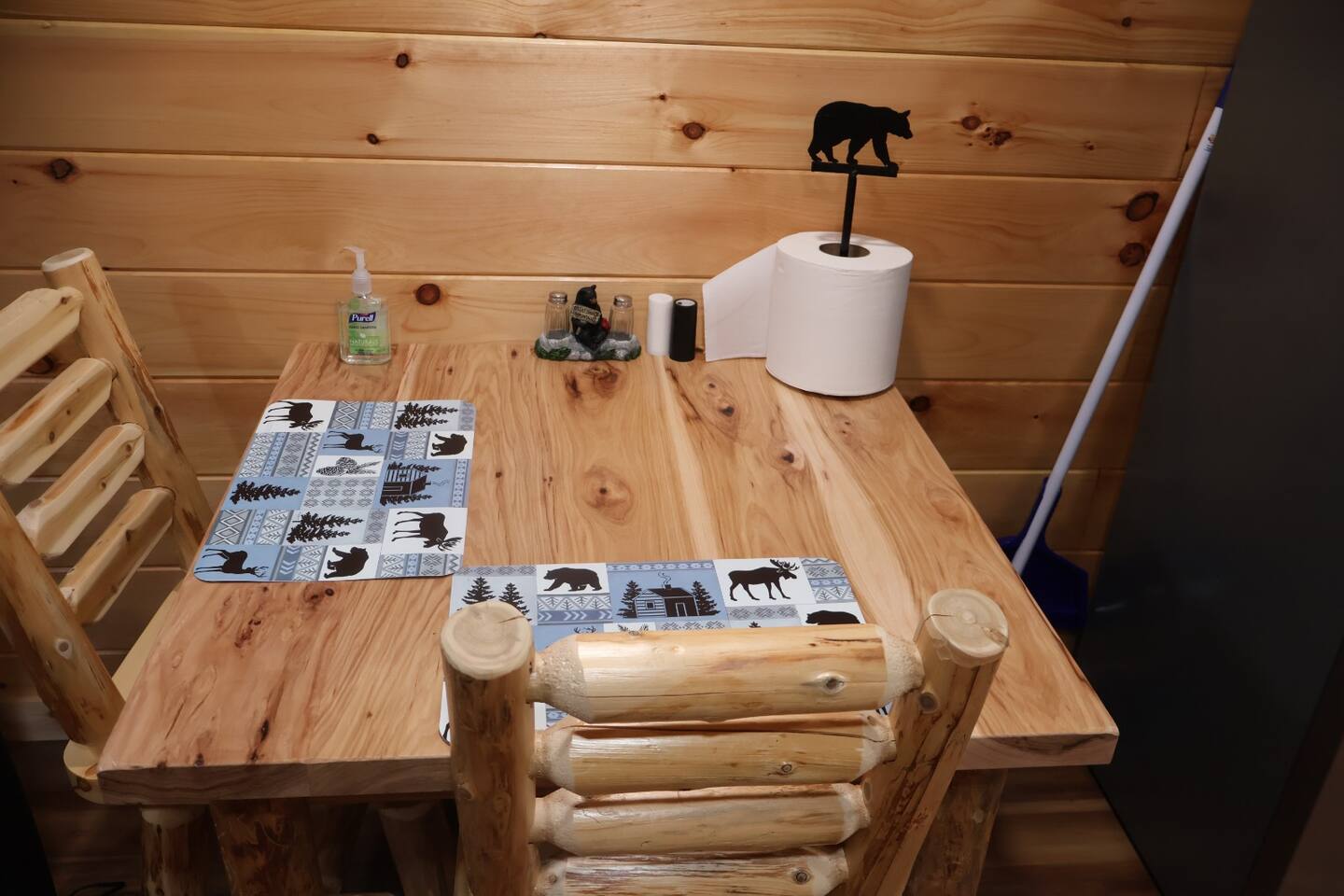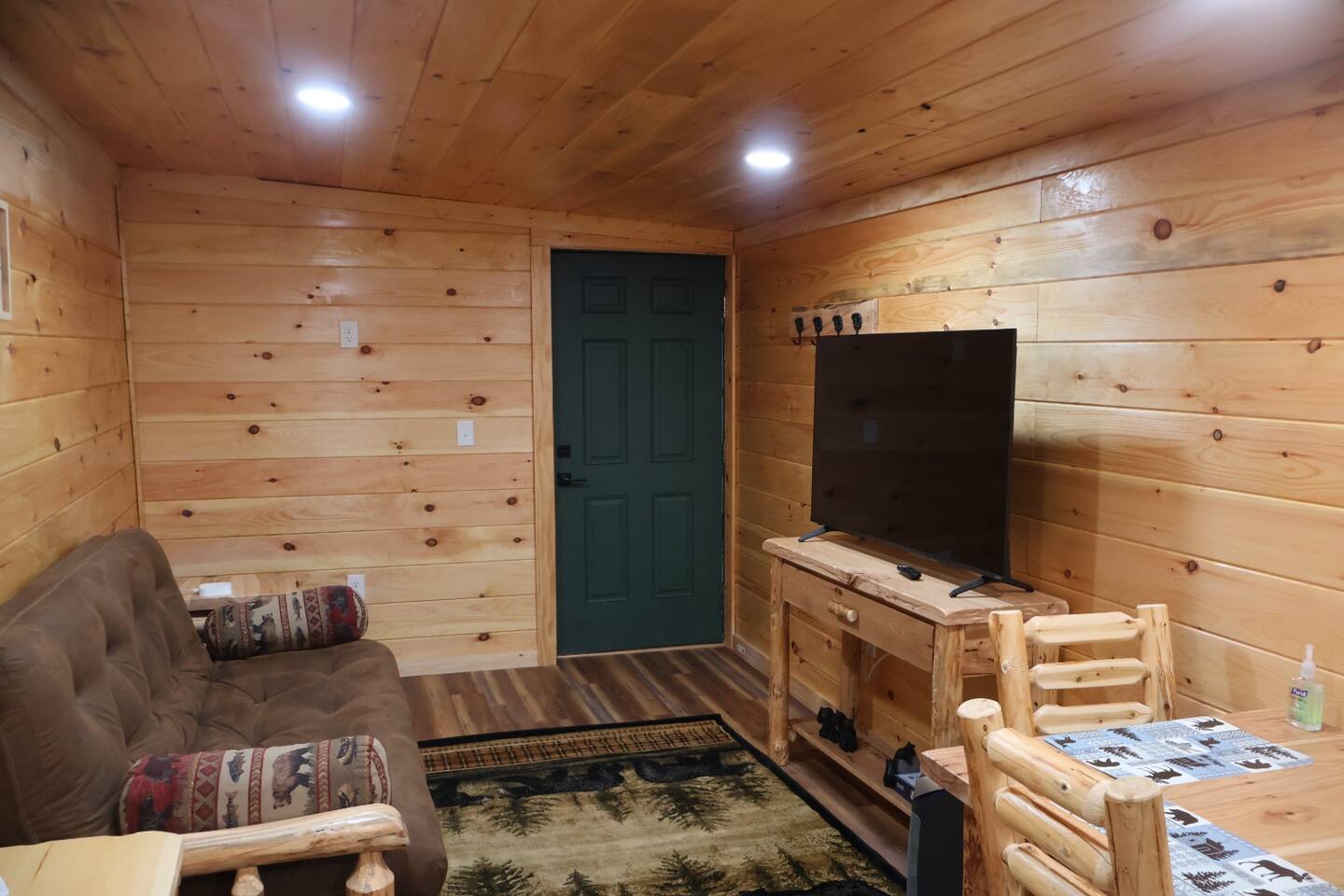The Cozy Cabin at Smoky Bear Lodge is located on US-321 with direct access to downtown Gatlinburg (20 min). Maddron Bald Trailhead in the Great Smoky Mountains National Park is just 1 minute away. Dollywood is about 35 minutes away. Guests enjoy shared outdoor amenities including a charcoal grill, picnic table, waterfall, fire pit, and a large game room in a detached building. Other cabins share these amenities. Dogs are welcome but must be included on the reservation when booking. This Cabin is approximately 400 sq ft, with a Queen size mattress . All furniture is custom made from wood. Enjoy the 60" smart TV with Roku for you to log into your own subscription services.. There is also a desk you may use. This cabin has a full bathroom including a shower and one-sink vanity. We provide all bath towels, hand towels, washcloths, toilet paper, shampoo, body wash, and a hairdryer. The kitchen is equipped with a microwave, two-slice toaster, coffee maker and coffee, two-burner hot plate, and a full size refrigerator. We provide all necessary cooking implements, including silverware, utensils, pots/pans, bowls, plates, cups, and mugs. There is a kitchen table with seating for two. Game Room - Located directly off the parking lot by the fence yard, the game room includes Pool Table, Pac-man for two, virtual pinball, 86-inch tv with live tv, air hockey, and foosball Fully Fenced Yard – Located off the parking lot and in front of the Game Room, you must keep your dog(s) on a leash when walking around the property. Fire Pit, Charcoal Grills, and Water Fall Feature: Located at the back of the property (Accessed via the gravel path by the Game Room/fenced yard entrance, and walk to the path to the back of the property – stay on the gravel path the whole way) in Fire Pit – You will need firewood and lighting sources if you decide to use the fire pit. (You can purchase across the street at Donna Jo’s Waterfall Feature – Located in the outdoor area, a rushing fountain with a bench to sit and relax (shut down in Jan and Feb or when temps below freezing) Charcoal Grills – Located in the outdoor area, there are two charcoal grills and an outdoor sink with a picnic table. Please bring charcoal and lighting sources. You can purchase across the street at Donna Jo’s