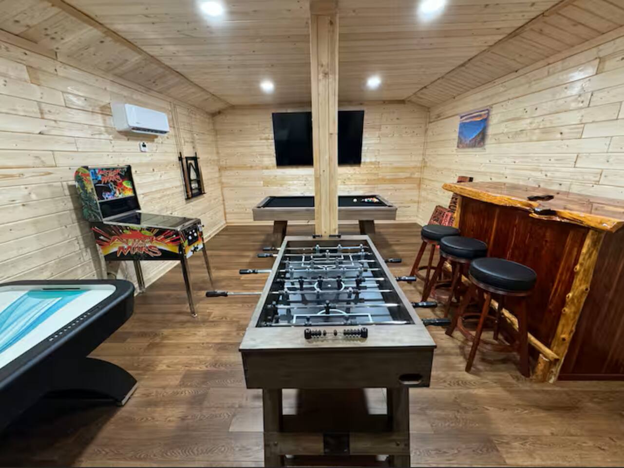 Smoky Bear Lodge Micro-Resort 🎳 2 Outdoor Bowling Lanes ⛳ 3 Mini Golf Courses 🔥 Fire Pit 💧 Outdoor Waterfall Feature 🍔 2 Outdoor Charcoal Grills 🐕 Shared Fully Fenced Yard 🎮 Game Room 🎱 Pool Table 🟡 Pac-Man Arcade 🕹️ Virtual Pinball Machine 🏒 Air Hockey ⚽ Foosball Table 📺 86” TV in Game Room 📍 Nearby Attractions ✅ 20 minutes to Gatlinburg ✅ 35 minutes to Dollywood ✅ 10 minutes to Cosby/Greenbrier Park Entrance ✅ 1 minute to Maddron Bald Trailhead (National Park Hiking Trail)