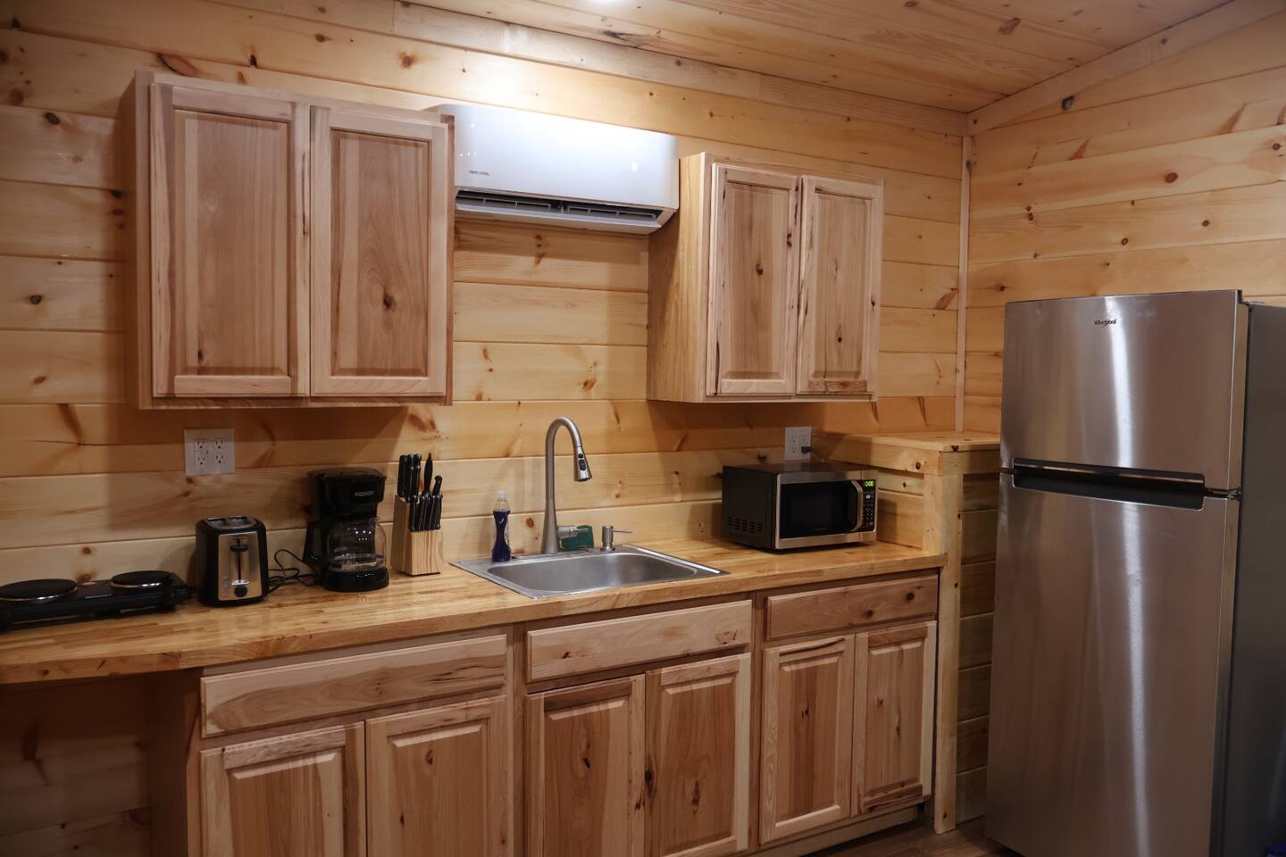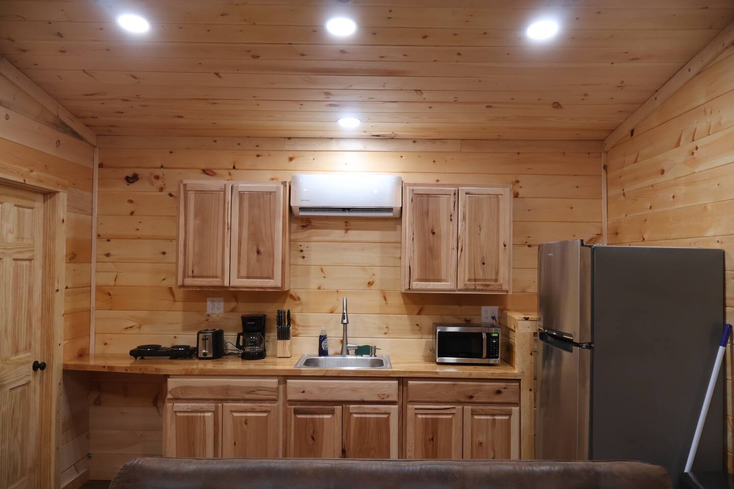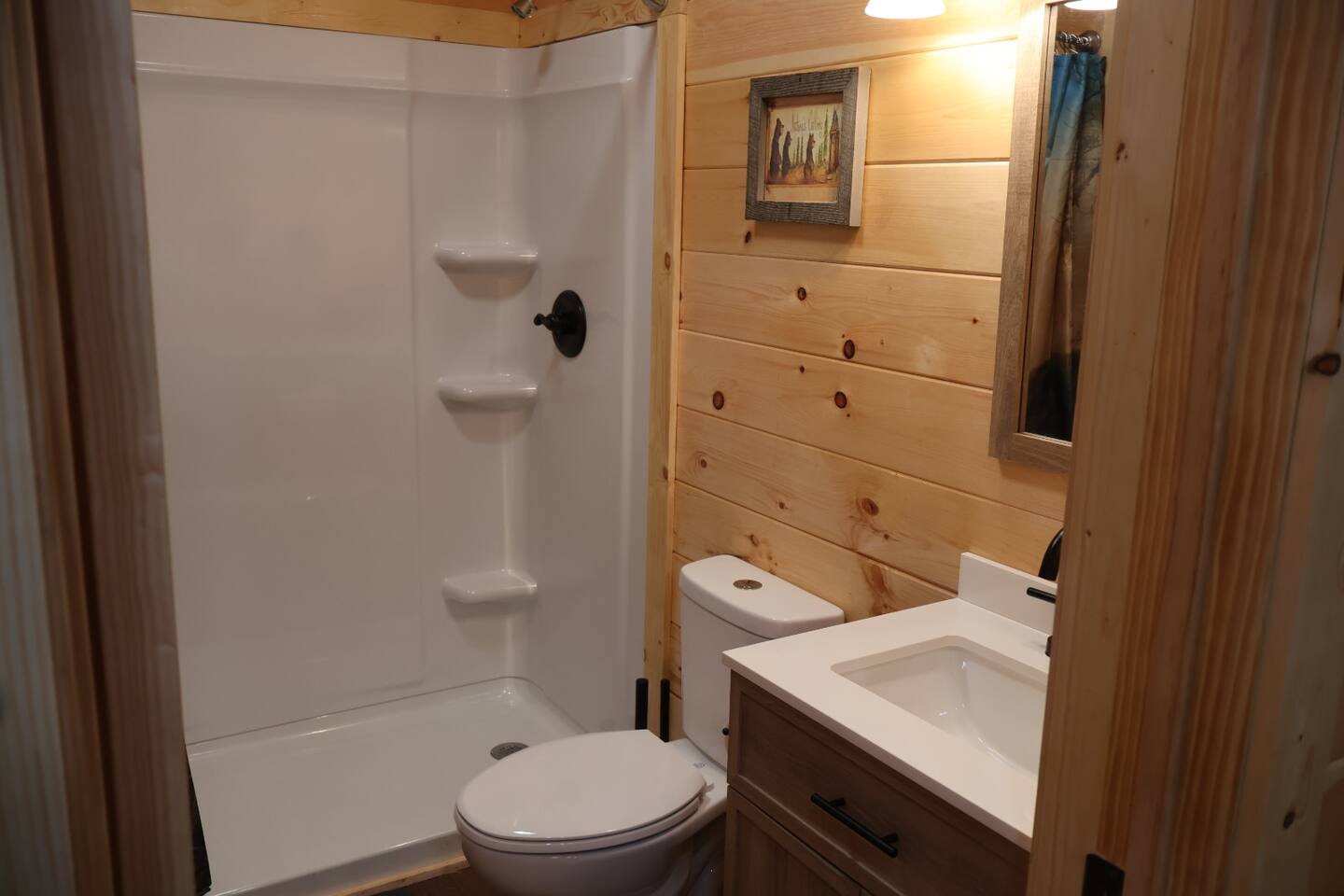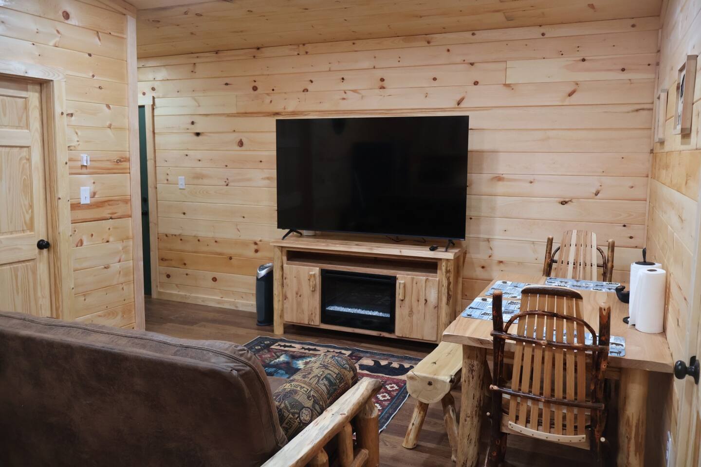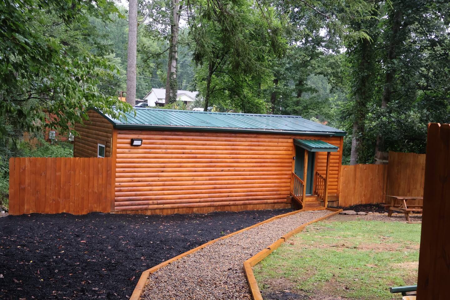 Smoky Bear Cabin is a private 2 bedroom new cabin with a private fenced in front yard, situated behind the Smoky Bear Lodge. It is located on US-321, which leads directly into downtown Gatlinburg (20 min) Dogs MUST BE on the reservation when booking. Maddron bald trail 1 min away.Dollywood is 35-40 mins away. There is an outdoor shared community area with Charcoal Grill, Picnic Table, Water Fall, Fire Pit, and Large Game Room (In detached building)!! Enjoy 3 Mini golf holes and outdoor bowling! This Cabin is approximately 680 sq ft, with a King size mattress and closet in the main bedroom. In the second bedroom there is a queen side bed with an office desk . All furniture is custom made from wood. Enjoy the 70 inch smart TV with Roku for you to log into your own subscription services. You have a full private fenced yard in the front (keep gate closed at all times). This cabin has a full bathroom including a shower and one-sink vanity. We provide all bath towels, hand towels, washcloths, toilet paper, shampoo, body wash, and a hairdryer. The kitchen is equipped with a microwave, two-slice toaster, coffee maker and coffee, two-burner hot plate, and a full size refrigerator. We provide all necessary cooking implements, including silverware, utensils, pots/pans, bowls, plates, cups, and mugs. There is a kitchen table with seating for 4 Game Room - Located directly off the parking lot by the shared fenced yard, the game room includes Pool Table, Pac-man for two, virtual pinball, 86-inch tv with live tv, air hockey, and foosball! 3 mini golf courses and 2 lanes for bowling! Fire Pit, Charcoal Grills, and Water Fall Feature: Located at the back of the property (Accessed via the gravel path by the Game Room/fenced yard entrance, and walk to the path to the back of the property โ stay on the gravel path the whole way) in Fire Pit โ You will need firewood and lighting sources if you decide to use the fire pit. (You can purchase across the street at Donna Joโs Waterfall Feature โ Located in the outdoor area, a rushing fountain with a bench to sit and relax (shut down in Jan and Feb or when temps below freezing) Charcoal Grills โ Located in the outdoor area, there are two charcoal grills and an outdoor sink with a picnic table. Please bring charcoal and lighting sources. You can purchase across the street at Donna Joโs