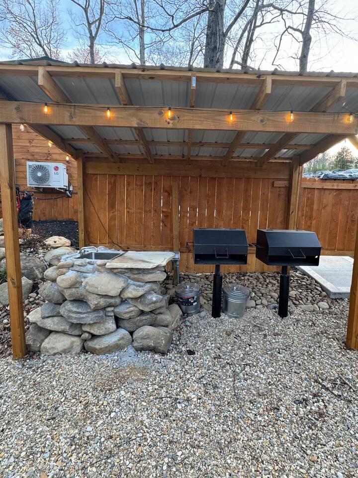 Smoky Bear Lodge Micro-Resort 🎳 2 Outdoor Bowling Lanes ⛳ 3 Mini Golf Courses 🔥 Fire Pit 💧 Outdoor Waterfall Feature 🍔 2 Outdoor Charcoal Grills 🐕 Shared Fully Fenced Yard 🎮 Game Room 🎱 Pool Table 🟡 Pac-Man Arcade 🕹️ Virtual Pinball Machine 🏒 Air Hockey ⚽ Foosball Table 📺 86” TV in Game Room 📍 Nearby Attractions ✅ 20 minutes to Gatlinburg ✅ 35 minutes to Dollywood ✅ 10 minutes to Cosby/Greenbrier Park Entrance ✅ 1 minute to Maddron Bald Trailhead (National Park Hiking Trail)